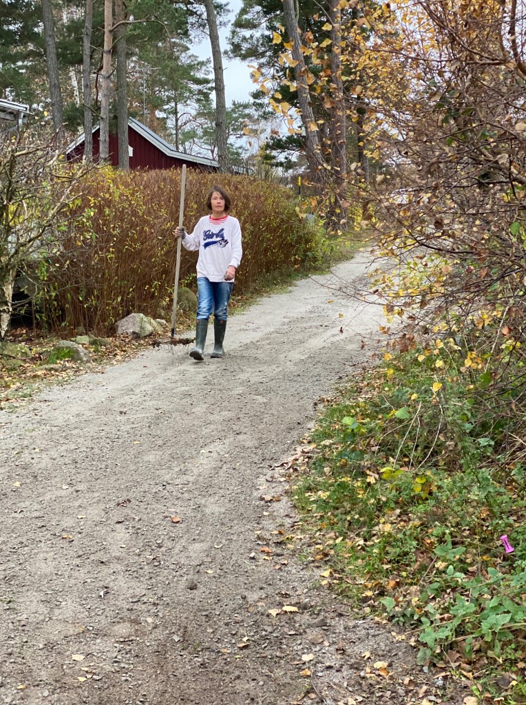 8713 steg har jag alltså gått medan jag rättade till och jämnade ut det tjocka lager av (tung…) sand de stjälpt ut. Då är inte stegen innan eller efter arbetspasset med. Dagen började dessutom med en cykeltur för att hämta tidningen, om man går är den sträckan 2000 steg. Det var för övrigt då jag förstod att jag måste göra något åt de tjocka lager grus som låg liksom i högar här och var. Jag slirade och det var sjukt tungt att cykla. Fick stå upp! Nu är jag helt slut. Drygt fyra timmars gympass utan paus!
