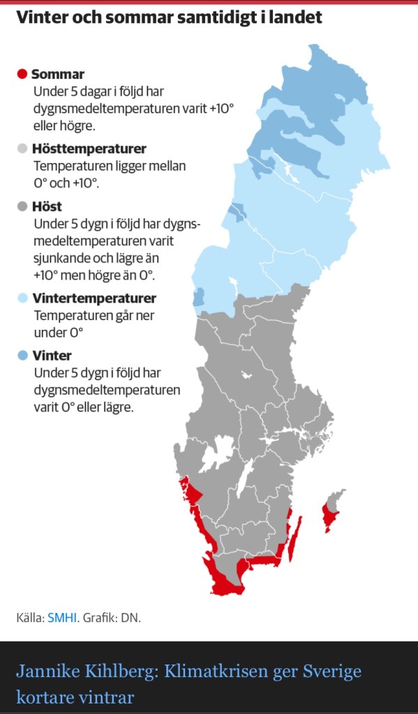 Hon: har ju märkt att det är varmt, men att vi fortfarande har sommar hade jag ingen aning om! Men enligt dagens DN så har vi det, och i Norrland är det vinter. I Stockholm höst. Tre årstider har vi i Sverige just nu med andra ord…