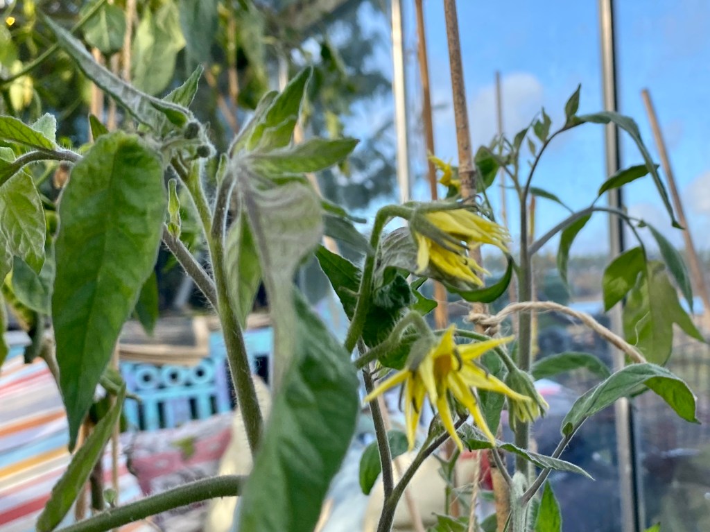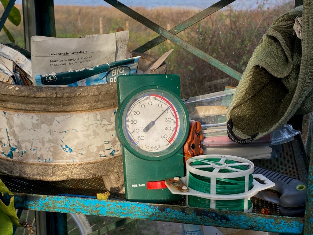 Frågan är vad min självsådda tomatplanta som står i det kalla växthuset tycker om det, den verkar ju tro att det är vår: