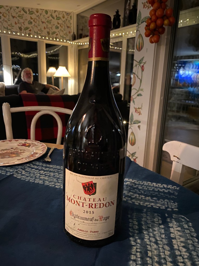 Och som vanligt öppnade vi en avdammad tidigare årgång av Châteauneuf–du–Pape från Mont–Redon, Bommes husvin… tack!