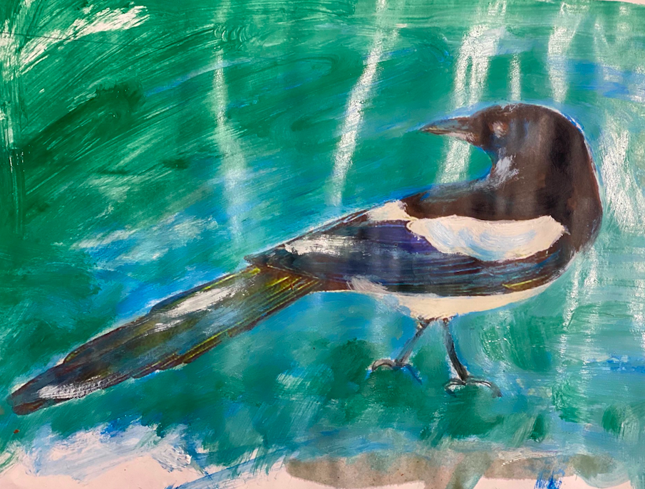 När jag efter läkarbesöket kom till ateljén blev det bara en skata.