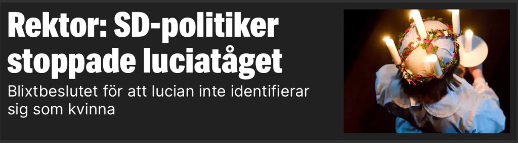 Han: Nej blond var hon sannolikt inte, den heliga jungfrun Lucia från Syracusa på Sicilien, upphovet till vår Luciatradition. Men förlåt om jag förstör den fina stämningen för jag har varit olydig mot regeringen.