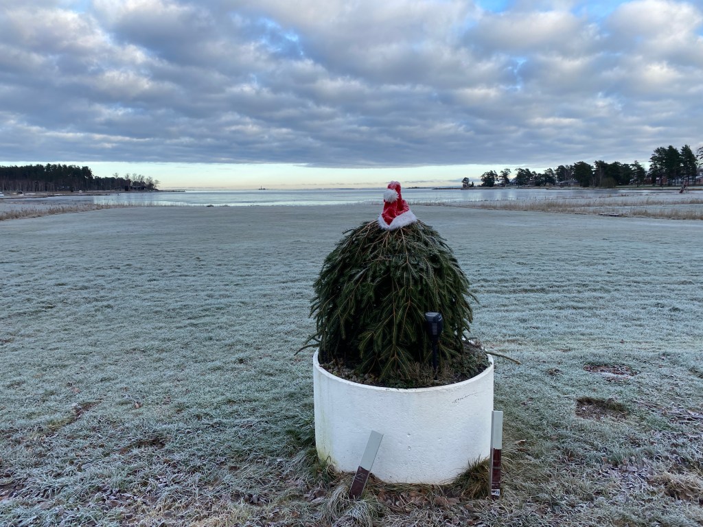 Julpynt längs vägen inne i viken