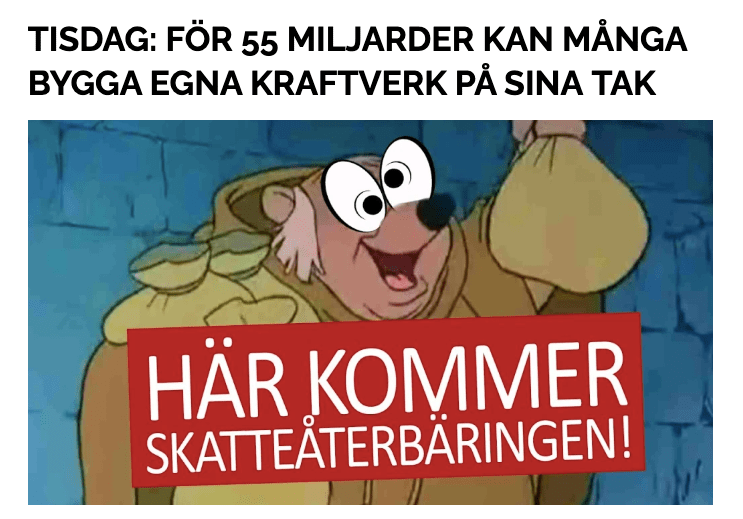– Det betyder att vi bara under dessa två månader gett oss själva ett bidrag på drygt 14 000 kronor – mer än politikernas elva tusen plåster på den oreda i energipolitiken man själva skapat.