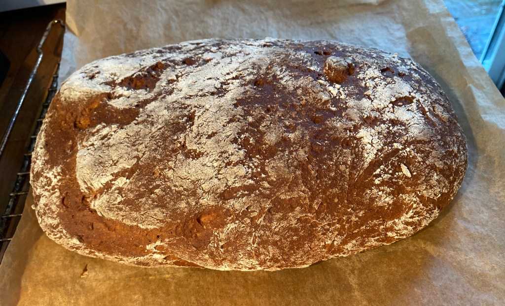 Hon: vet inte när jag såg solen senast, så himla grått och trist väder. Hade velat vara ute och jobba i landen idag, men det blev ytterligare en innedag. Bakat, fröknäcke och en ny limpa på vanlig jäst.