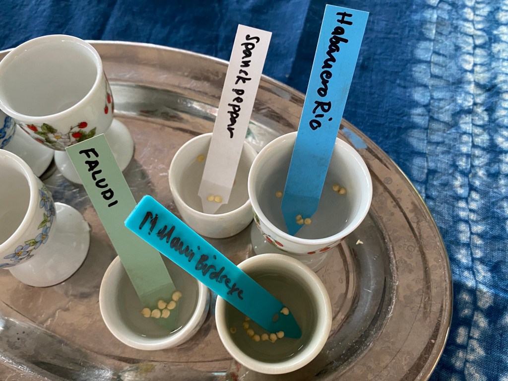 Nu testade jag att blötlägga fröer ett dygn innan jag satte ner dem i jorden. Det ska enligt vissa snabba på processen.