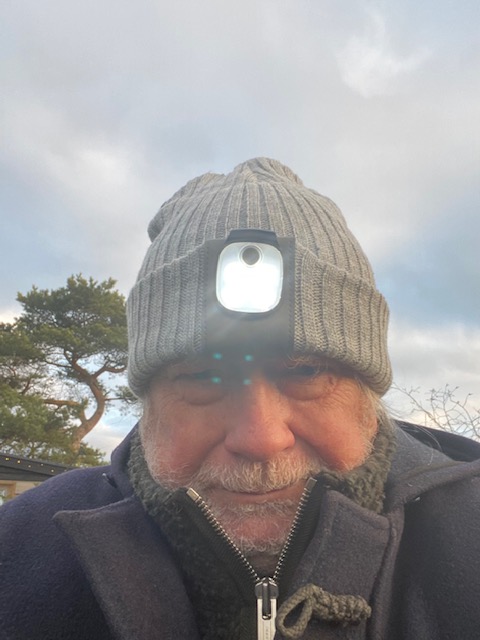 Och mössan med ledlampa som jag fått av snälla grannar för att hitta hem.