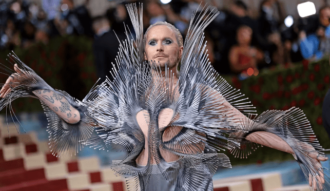 Apropå rosa näbbar: Vi har en kompis som heter Fredrik Robertsson. Han såg ut så här när han som en av två svenskar deltog på Met-galan, handplockad av modemagasinet Vogues chefredaktör Anna Wintour. Fredrik är den ende man jag känner som skulle platsa i fågelvärlden där det är hannarna som sticker ut när det gäller utseendet.