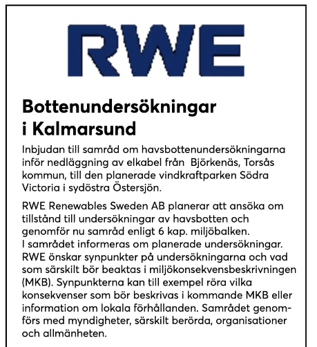 Av annonsen framgår att det inte handlar om att kabeln ska landas på ”fastlandet” i största allmänhet utan i vår steniga del av fastlandet, nämligen i Björkenäs.