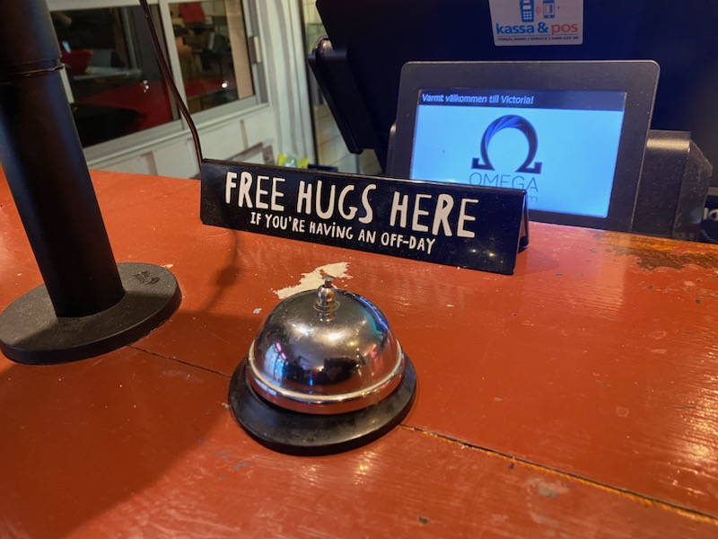 Hon: Victoria fanns inte när jag lämnade Torsås som 16-åring, så inget gammalt stamhak för mig. På den tiden var det en cykelaffär samt ombud för systembolaget. Man fick hämta sina beställda varor där, något regelrätt system fanns alltså inte i byn då. Ingen pub eller pizzeria heller. Man fick hänga på torget och köpa en korv i korvkiosken.