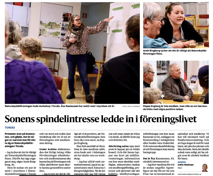 Egentligen var vi i byn för att gå på Naturskyddsföreningens workshop. Intressant även det, här smids planer. Det blev till och med en artikel i tidningen.