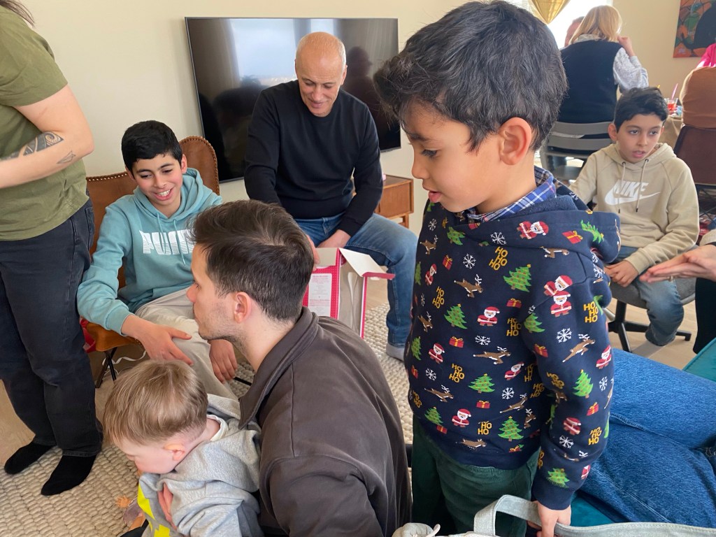 Största paketet öppnas, en dockvagn, från mormor och bonusmorfar Peppe…