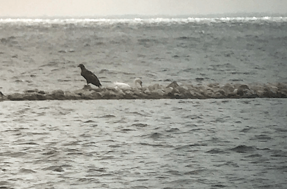 Ser ut havet och får en deja vy. En stor havsörn hovrar över Fimpan innan den slår sig ner på skäret några hundra meter söderut. Jag har sett scenen förut. Till saken hör att bilden nedan tog Isman den 10 augusti år 2020.
