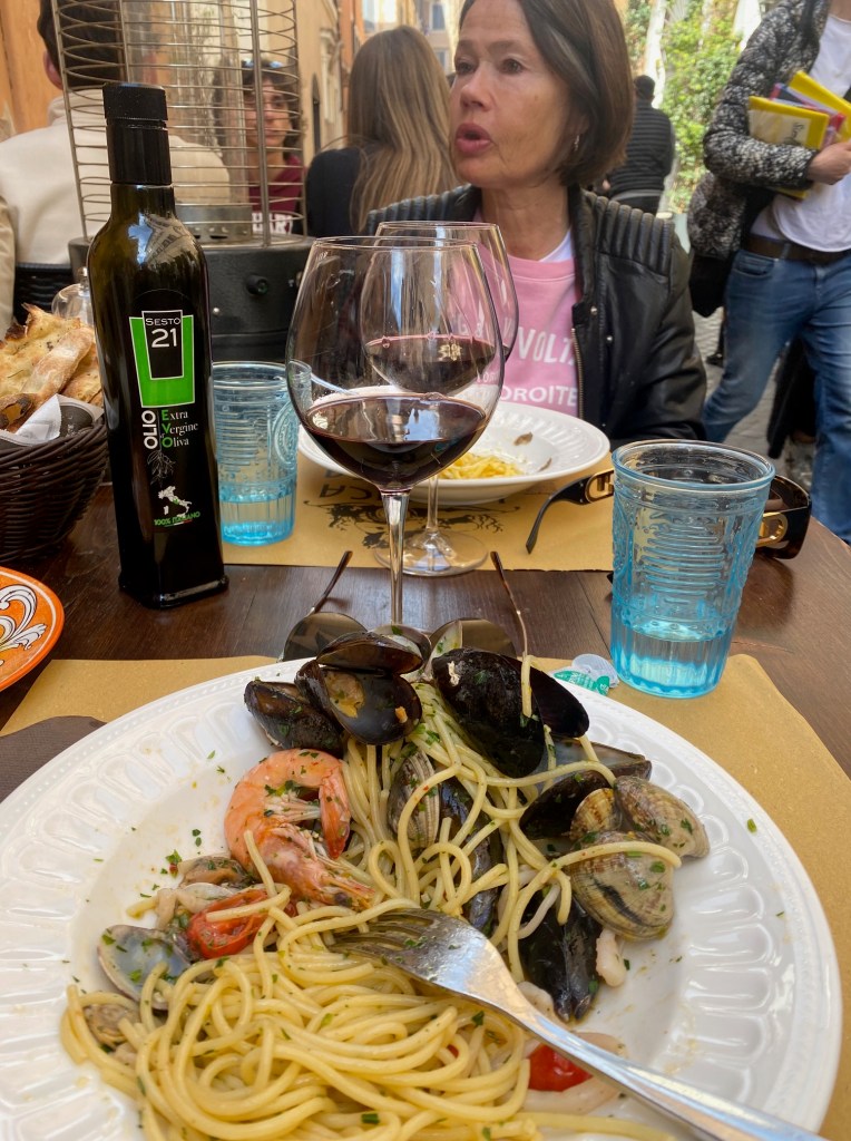 Han: 44 146 steg senare är vi tillbaka på udden. Vi har alltså tillbringat helgen i Rom med kompisar. Inte mycket att säga om det utom att det blev en massa soligare promenerande mellan caféer och trevliga kvarterskrogar runt Campo di Fiori och gettot, Trastevere, Piazza Navona gott rött vin, pasta och mer pasta, vongole, limoncello och så några timmar på den stora van Gogh-utställningen på Palazzo Bonaparte.