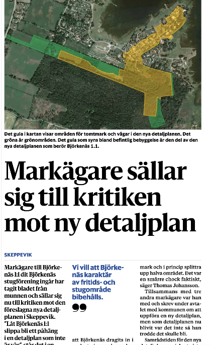 Denna rättighet kallas i dag för offentlighetsprincipen och är fortfarande unik i världen. Att denna princip fungerar även i utkantsverige fick vi bevis på i dagens tidning. Om du följer denna blogg vet du att vi är inblandad i en lågfrekvent skärmytsling mot en ny detaljplan som rubbar alla våra cirklar.