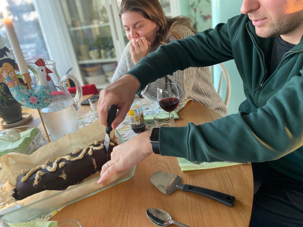 PS: Vi firar inte bara att min yngsta fru hunnit bli min äldsta 17 år senare. Erik och Amanda (med en liten kyckling i magen!) kom igår och det är också värt att fira med hennes hembakta konstverk (”påskvärk”).