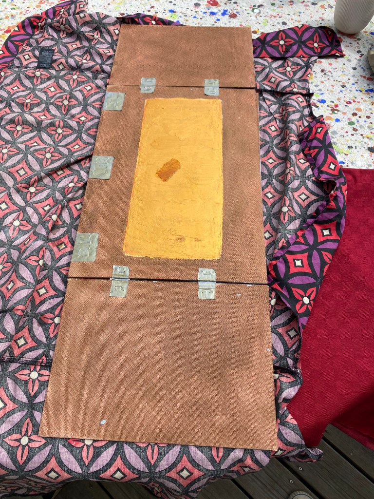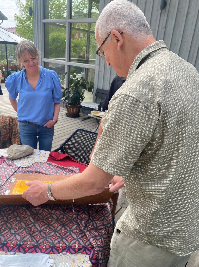 Men vi träffade inte bara en konstnär, vår kompis (och multiartist…) Gunnar Brulin, som har landställe i närheten, kom också förbi och visade upp sitt senaste alster, en hopvikbar konstbok. Boken ingår i Gunnars sorgearbete Psykograferna som han tidigare i år visade på Fabel bar i Aspudden.