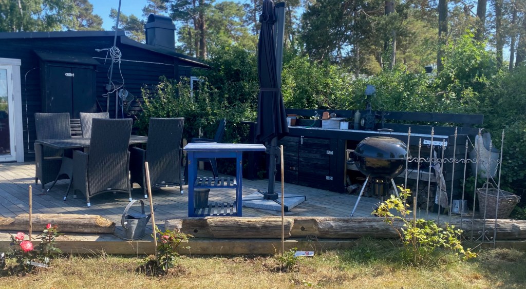 För egen del har den manliga delen av de fastboende på udden ägnat mig åt vackra saker. Till exempel att plantera rosor hos Margareta. En ros som heter Kalmar Slottsros (259 kr) och två Nostalgi, en kulturros som ger storblommiga rosavita blommor (a 315 kr) på handelsträdgården i Netraby.