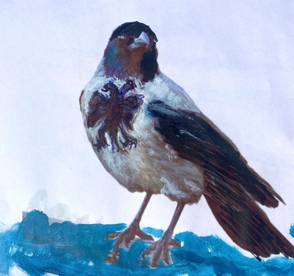 – Det är inte på alla uddar i Kalmarsund som det bor en gammal luggsliten kråka som vaggar omkring med en skabbig version av det habsburgska väldets symbol tecknad över det grå bröstet. Men det gör hon.