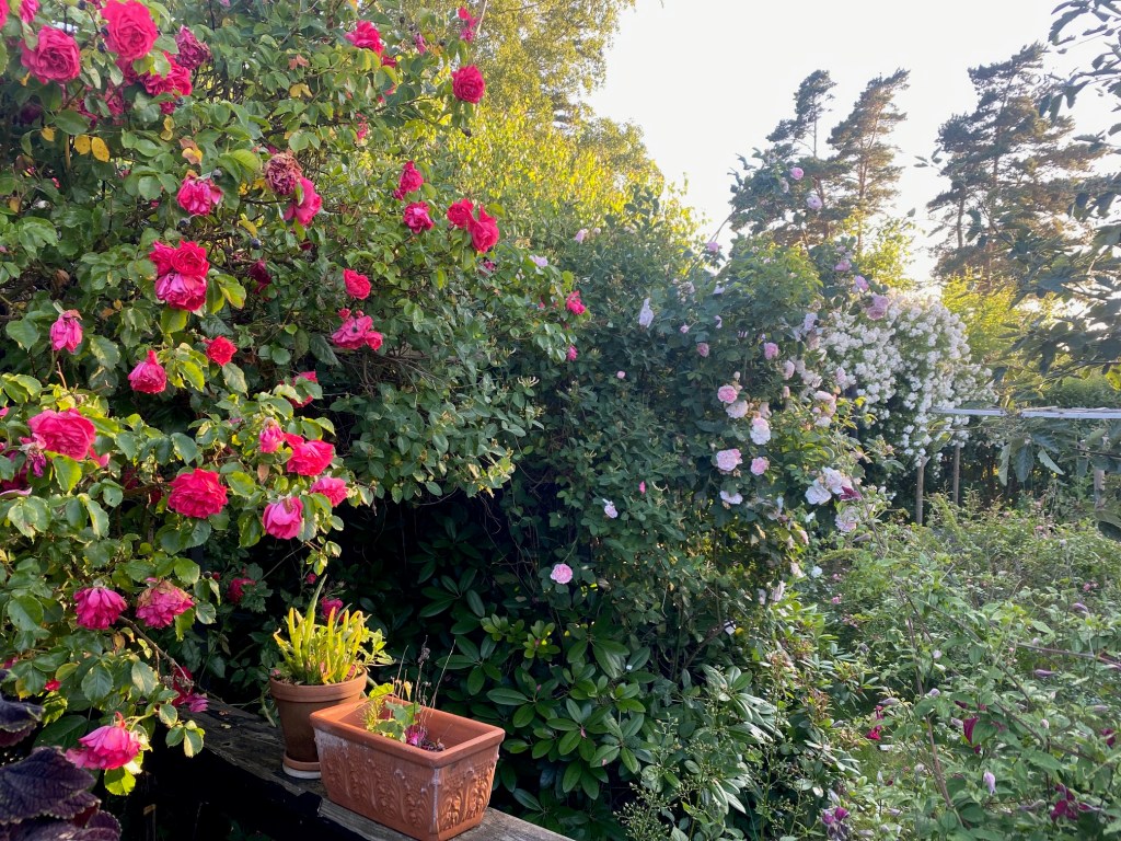Och i morse kändes det som höst. Kanske beror det på att katterna flyttat in igen? Möjligen beror det på rosorna ropar på att befrias från sommarens första omgång fallna kronblad.