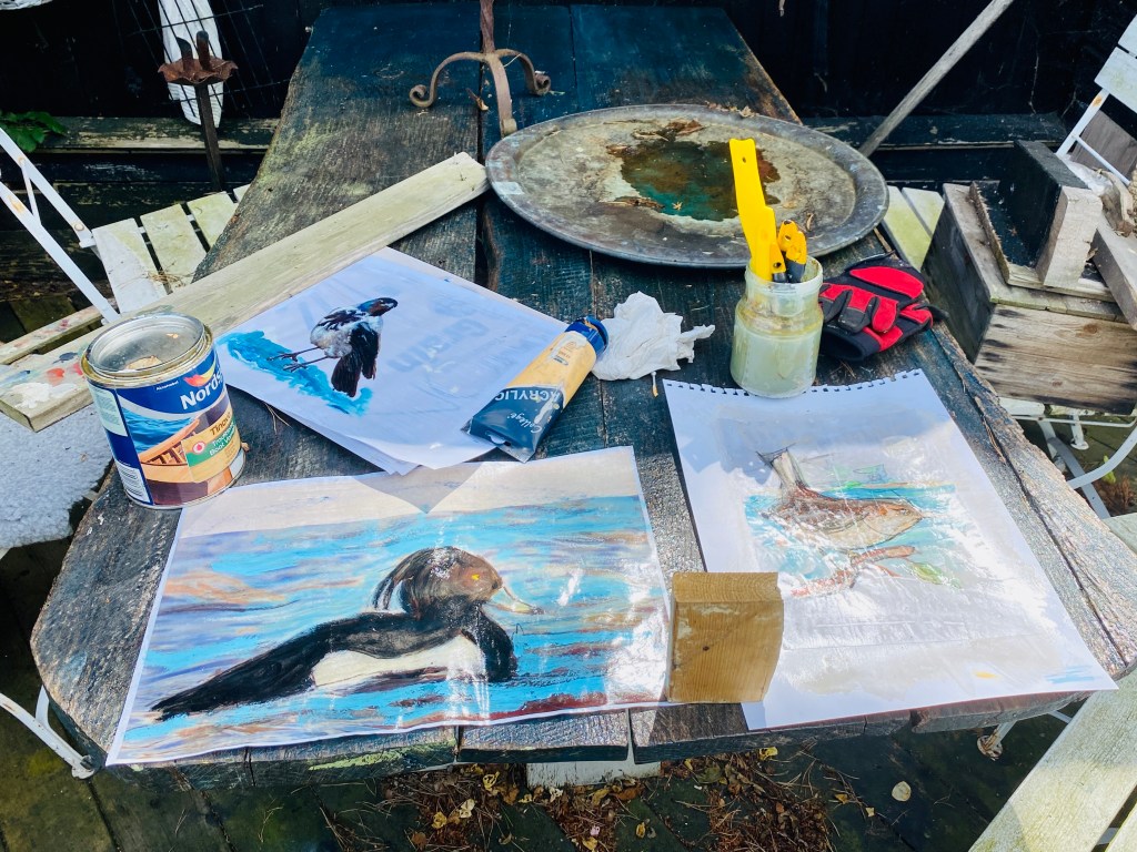 Men kommer det ett sms från golfspelande föräldrar som har två uttråkade tonåringar i torpet… och så var jag helt själv kvar med spåren av en konstnär (och morfar).