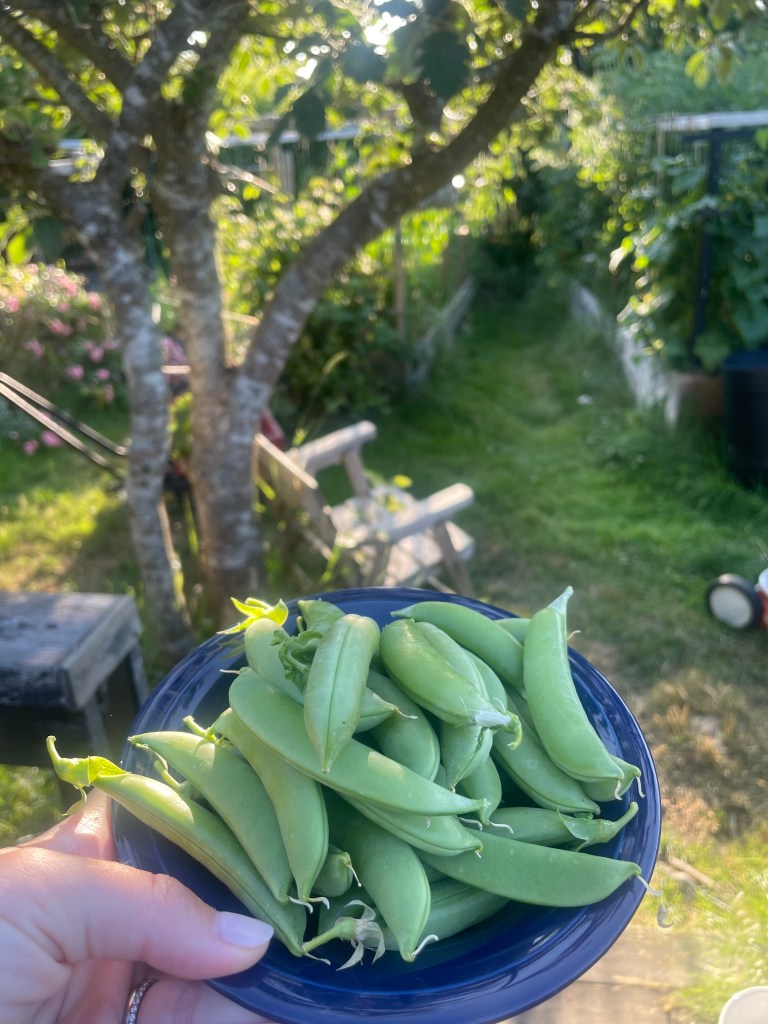 Sommaridyll för oss att få gå runt och vattna, plocka och äta från landen här ute. Favoriten, förutom tomaterna var helt klart sugar snapsen.