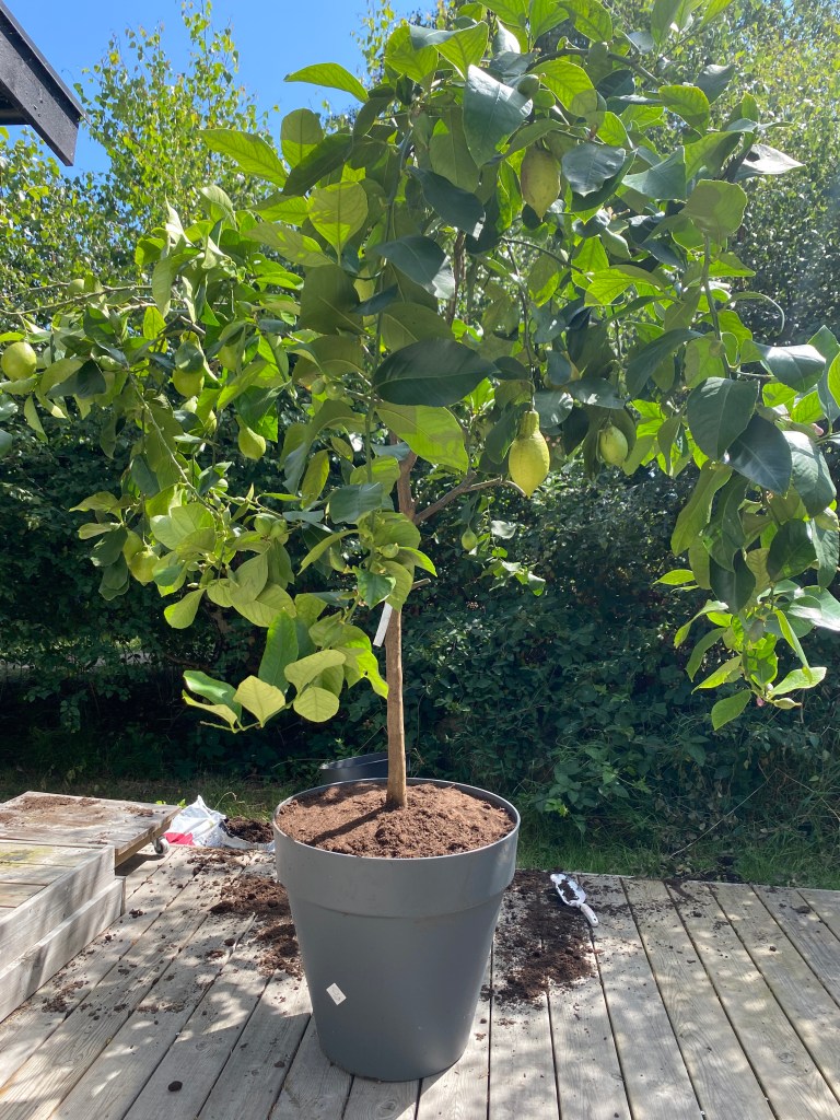 Och för första gången i sommar är det bara han och jag, tjohoo! Men vi har mycket att stå i, bland annat omplantering av citronträdet som blåst omkull när jag var borta. Tio citroner rök…