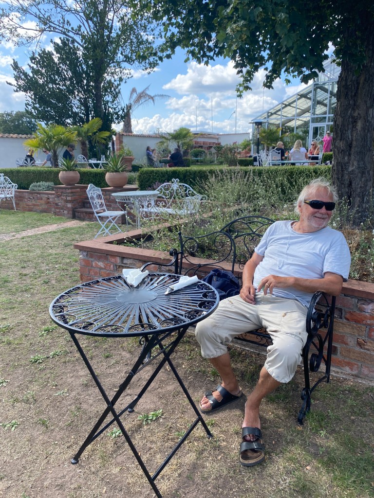 Måste vara varmaste dagen i sommar, +28 grader visade termometern i bilen. På udden var det +25. Och det kändes verkligen som om vi var vid medelhavet med den ljumma brisen och ett glas kallt rosévin. Omgivningen med alla palmer, citrus- och olivträd gjorde ju inte känslan mindre.