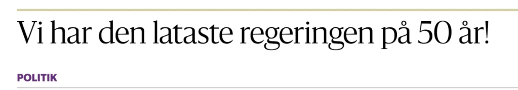 Det kan man tycka. Men det är första gången jag hör någon politiker definiera politik på det här sättet: ”Under första riksdagsåret har de endast lagt 91 propositioner – det lägsta sedan enkammarriksdagen infördes 1971. Genomsnittet de senaste tio åren är 164 propositioner. Till och med 2018/19 när regeringen inte kunde tillträda förrän i slutet av januari så lades fler propositioner än i år. Inte heller ser regeringen ut att planera att göra så mycket framåt. De har startat en tredjedel så många utredningar som ett genomsnittligt år…” (insändare Barometern 8 juli).