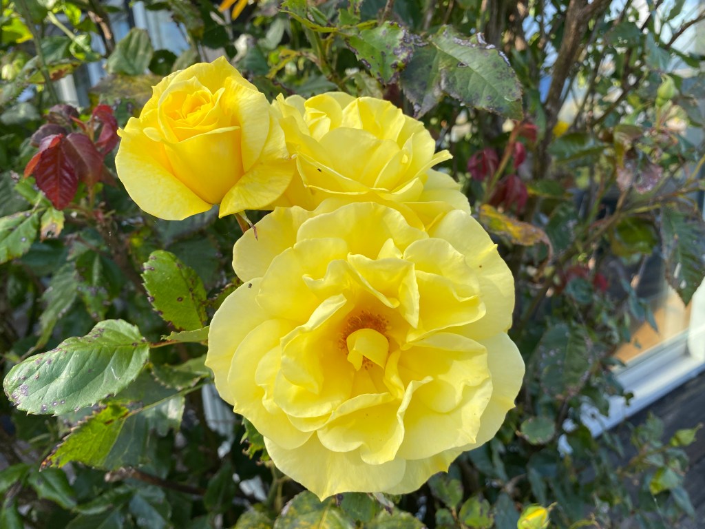 Hon: Jag avslutar dagens blogg med en ros. Vår fantastiska gula ros på framsidan (mot havet) blommar för fullt igen och har en massa nya knoppar. Den brukar till och med blomma i december. Nu måste jag fortsätta förbereda kvällens middag, våra kompisar från Danmark är på ingång!