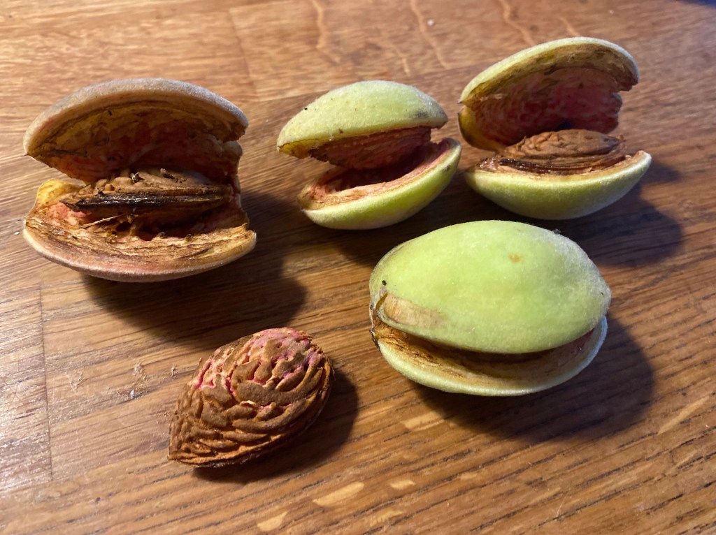 Hon: Skördat chili och fem mandlar, röjt bland kaprifolen i timmar och sedan malt chili. Nu soffan, pust!