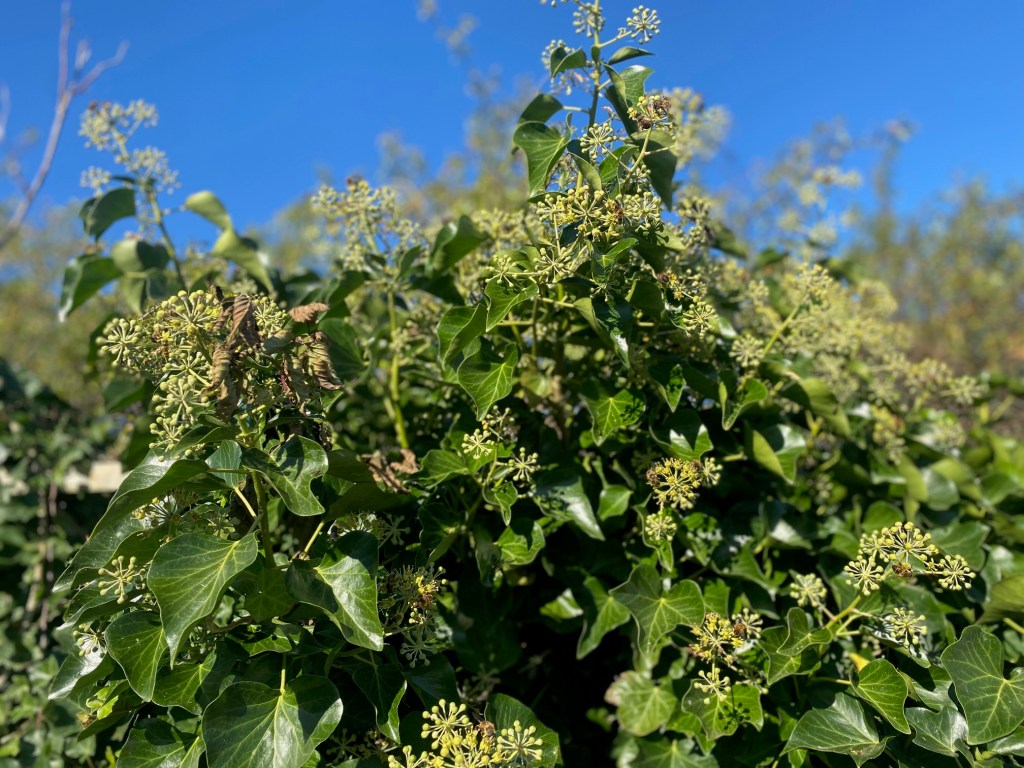 Från och med nu kommer vår murgröna att blomma varje höst i september–oktober. Redan nu märker vi att blommornas nektar är mycket populär bland bin och de få fjärilar som fortfarande håller till på udden. Efter blomningen kommer små gröna frukter att utvecklas och senare i vintern kommer de att bli dekorativt svarta.