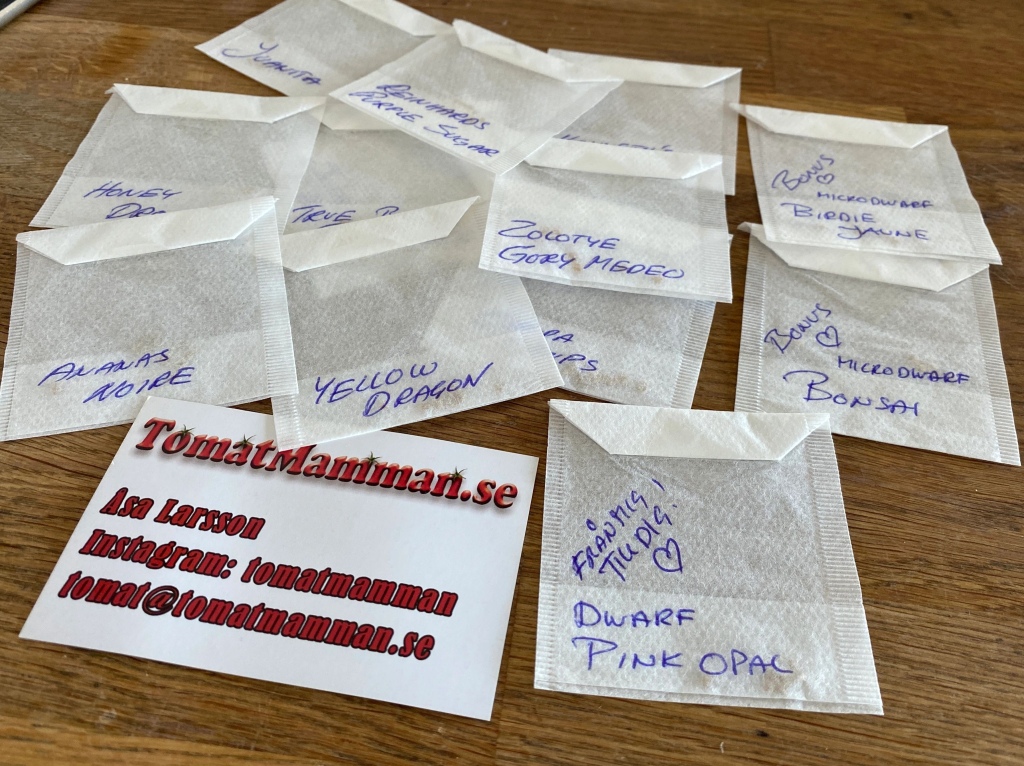 Igår fick jag nämligen efterlängtad post, ett brev med tomatfröer från Tomatmamman. Jag har beställt fröer av henne i flera år, hon bor bara några mil norr om oss, och var inte så känd första åren. Nu är hon megapoppis. Det är hon värd.