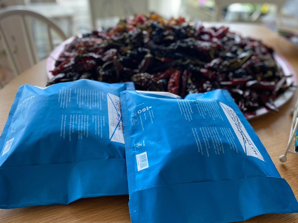 Hon: skickat iväg lite fler beställningar och malt mer av Chiliblandningen, klassikern. Det blev en rejäl batch, och jag tror den blev väldigt bra trots sent på säsongen. Chili(fisk) blandningen är helt slut. Fick ihop ett par till men de är förbeställda. Malde även ner de sista av Espelettechilin, de har jag eventuellt ett par kvar av…
