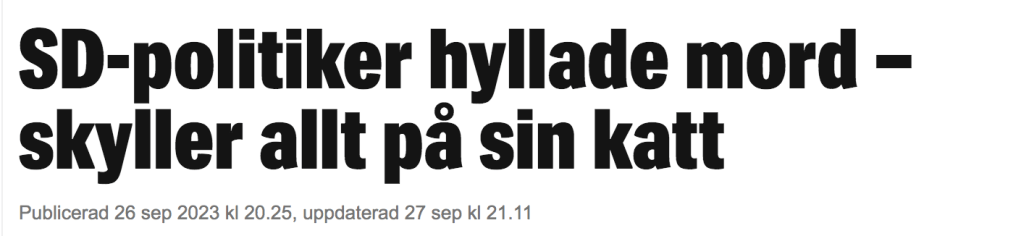 Av mediebevakningen framgår inte vad den oskyldiga katten tycker om att bli beskylld för att vara lika korkad som en framträdande SD-politiker och nämndeman.