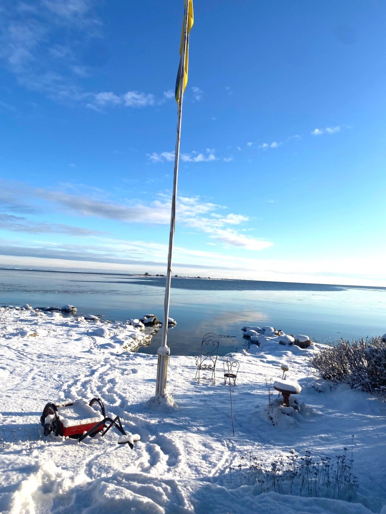 När dagsljuset här på udden träffar snön, bryts det upp i olika färger genom prismatiska effekter i iskristallerna.