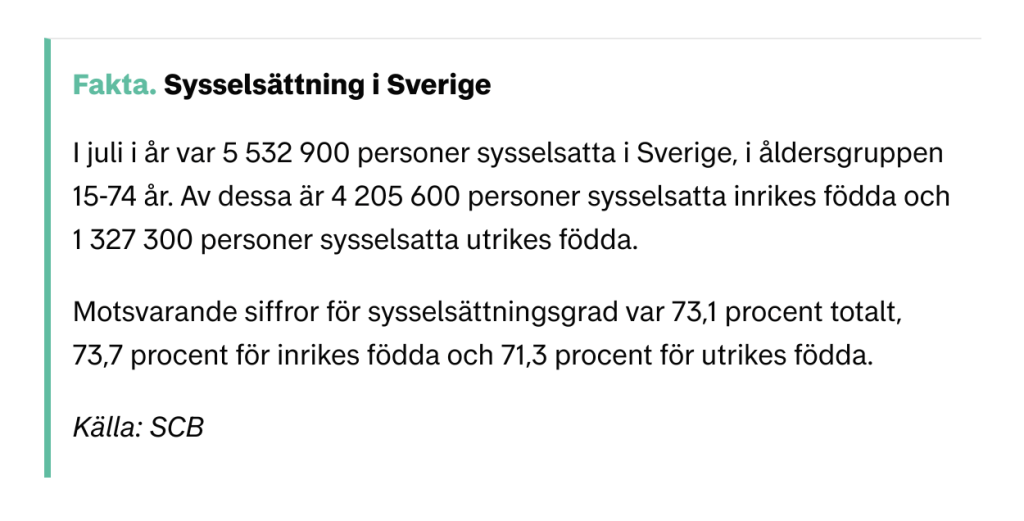 – Bland grabbar födda i Sverige drar färre än hälften in lika mycket pengar, enligt Statistiska centralbyrån. ”Både ensamkommande killar och tjejer arbetar ofta inom vård, omsorg och socialtjänst, något som är ovanligt bland svenskfödda i samma ålder, framför allt bland svenskfödda unga män.”