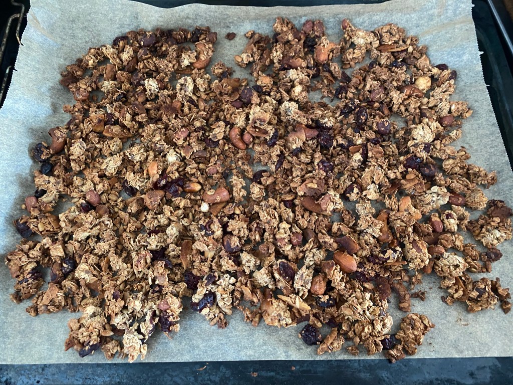 Men det var skönt att komma in i värmen och dessutom sätta på ugnen. Gjorde lite granola. Längesedan nu. Den blev väldigt god. Krispig.