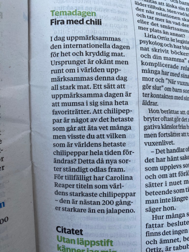 För övrigt är det chilins dag idag, det firar vi med en het Chicken Tikka till middag.