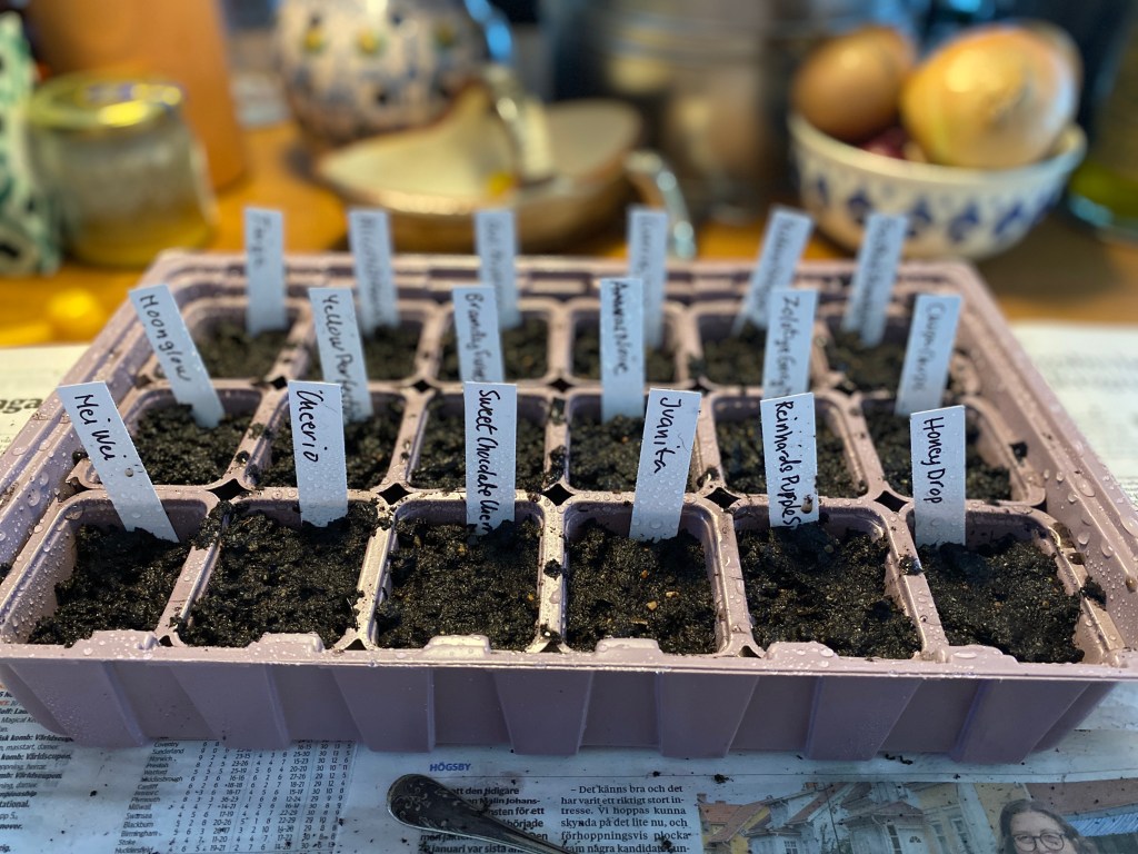 Och idag satte jag de första tomaterna. Känns också bra. Kollade i mobilen några år tillbaka och det stämmer ganska bra tidsmässigt med när jag brukar starta.