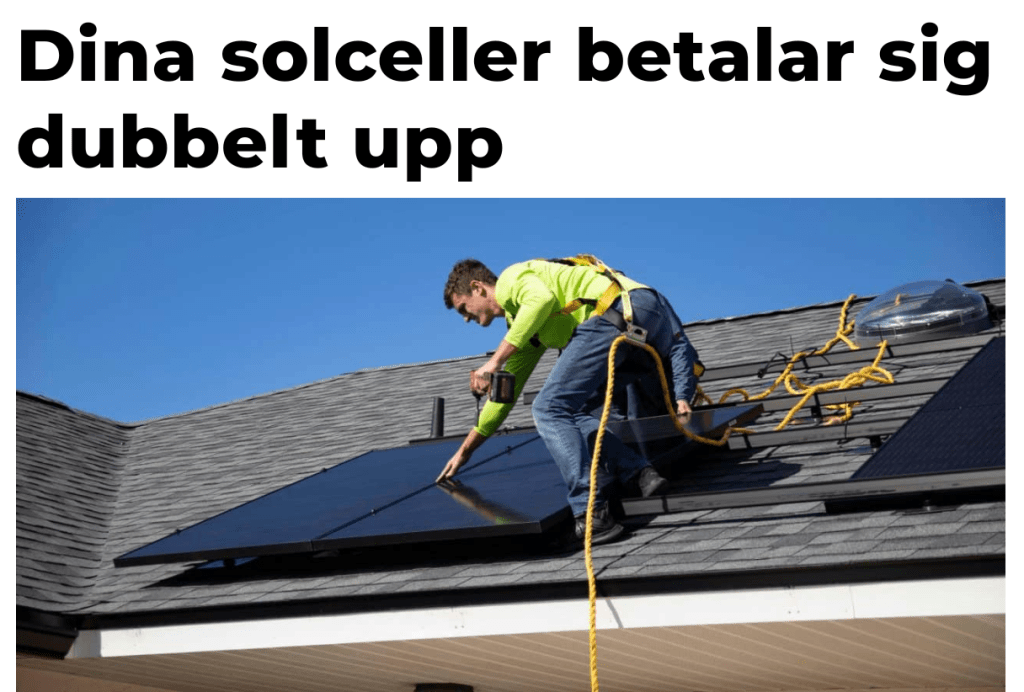 – Solceller i sig är en investering som gör att huset blir mer attraktivt vid försäljning. Dessutom sänker de husets omkostnader. Och vilken köpare vill inte ha lägre kostnader?
