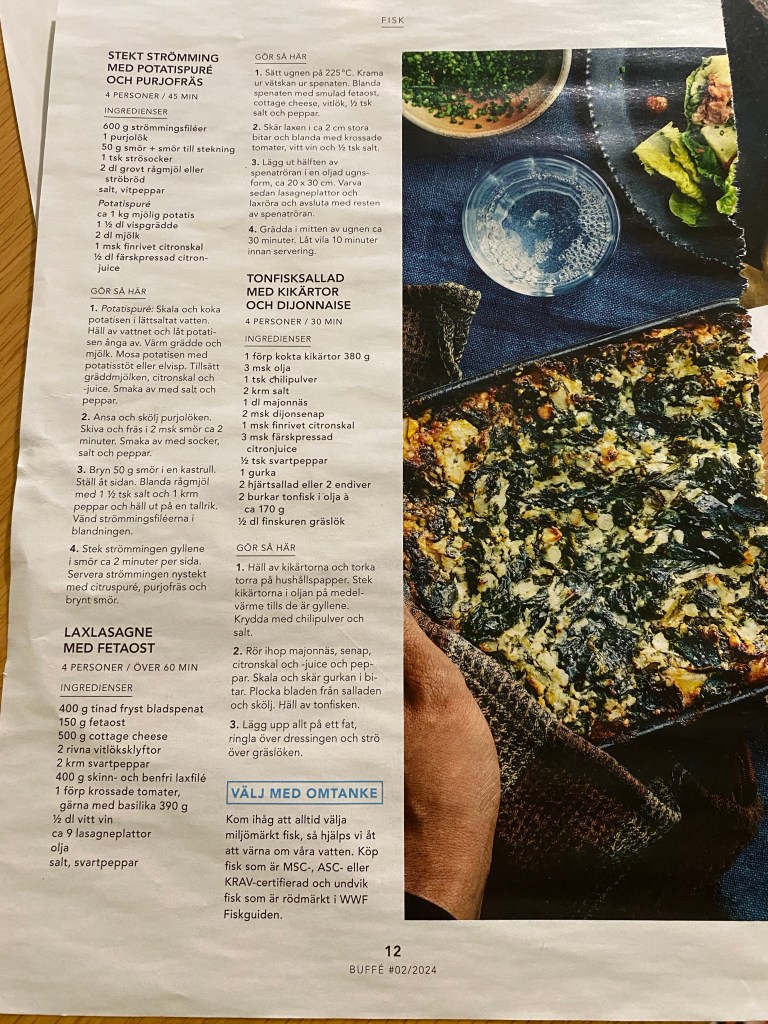 Dagens middag: kom på att jag ju också testat ett nytt recept från ICAs medlemstidning Buffé som kom med posten igår. (Förutom omskolat plantor)