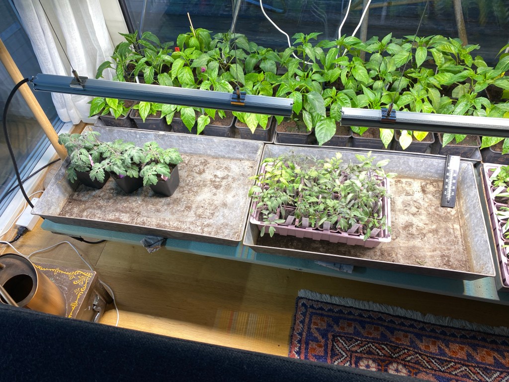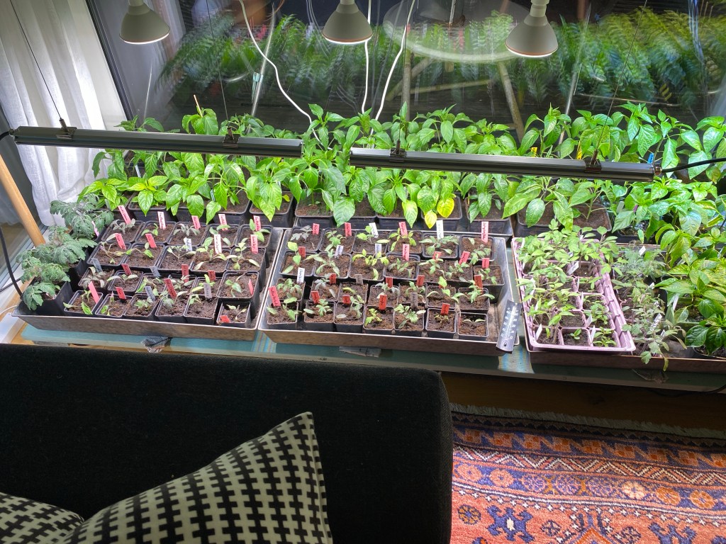 Men när drygt hälften fått egna och större krukor var det helt fullt igen, fast jag möblerat om och tyckt jag fått till mycket ny yta. Pust!! Vet inte hur jag ska få plats med resten…