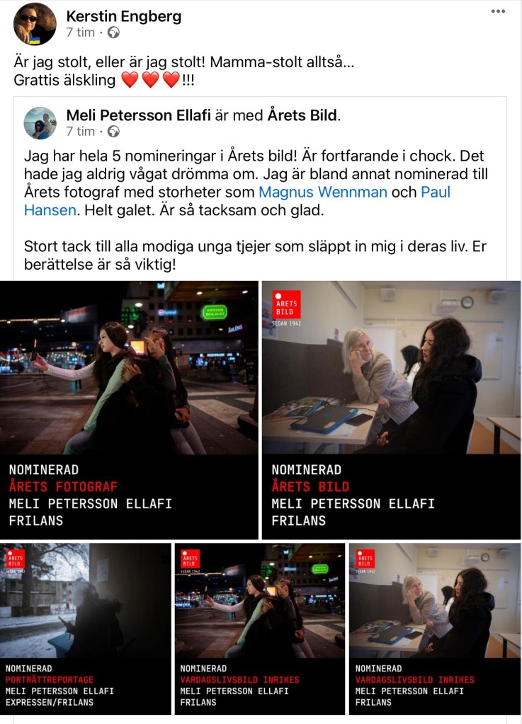 Efter det har dagen gått i ett lyckorus, bättre nyhet kan inte en mor med en frilansande bildjournalist som dotter få: