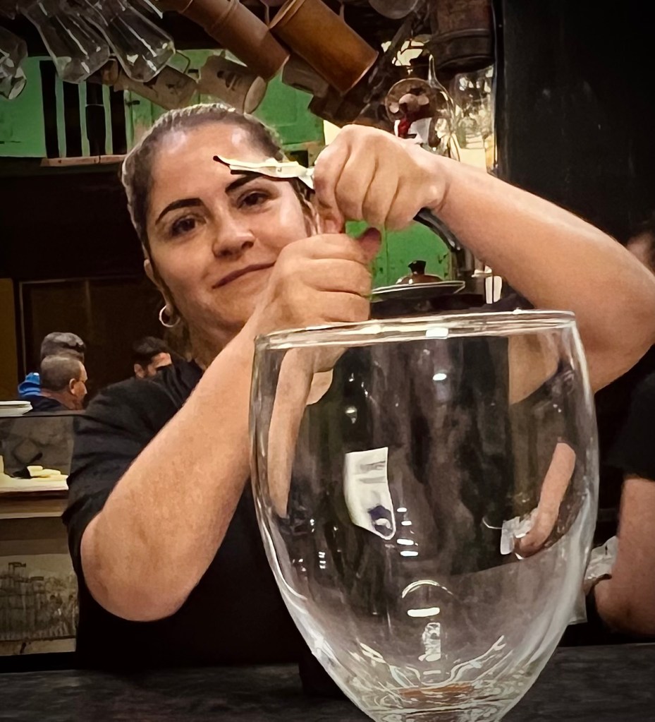 – Ett hål i väggen som alltid är fullt och där man (= kvinnorna, för det är bara kvinnor som jobbar här) endast serverar ett enda rödvin, Morozán a la 14 euro.