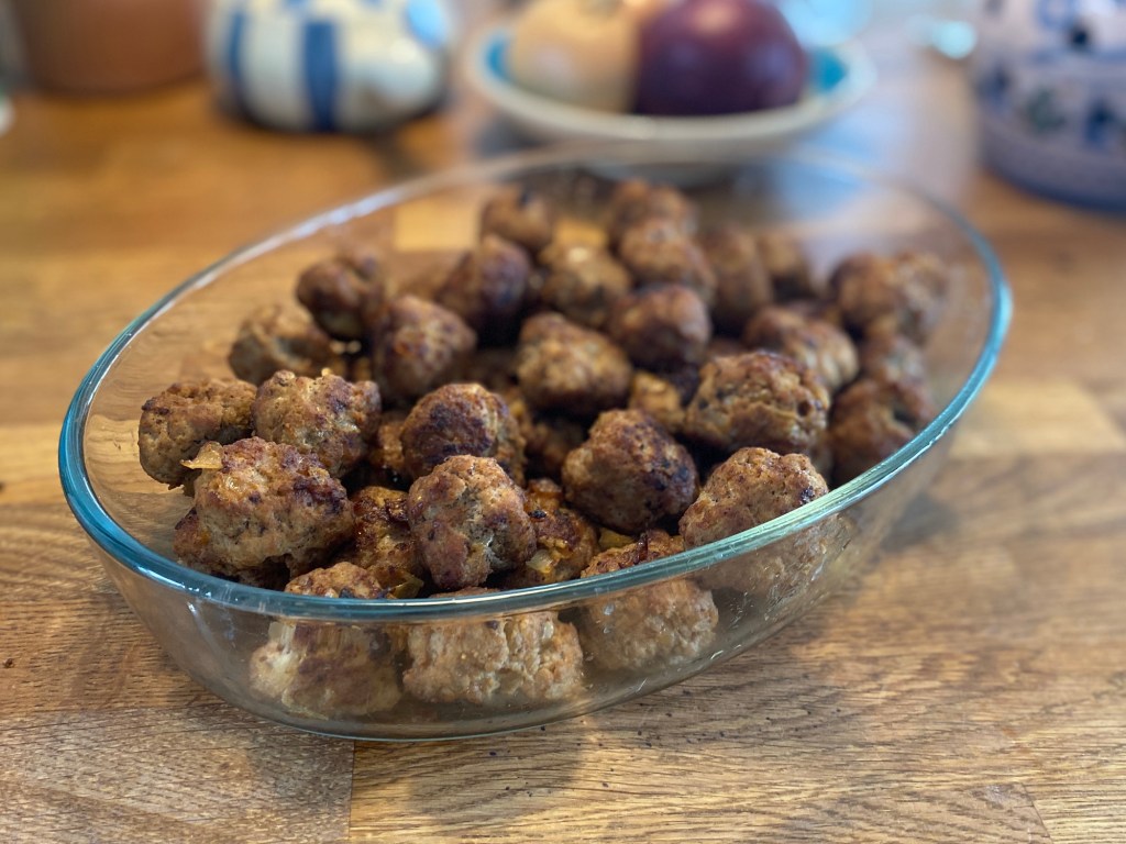 Stod ändå inne och stekte ett kilo köttbullar, det är ju påsk snart. Och goda blev de, gjorda på nöt- och fläskfärs (utegrisar) från Attanäs gård. Unnade mig trots det bara en, resten hamnade i frysen. Iggy gillar köttbullar och han kommer ner till farmor i påsk ;).