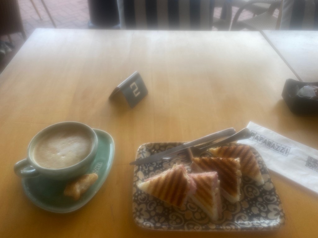 – Efter några dagar visste även personalen att gubbar har enkel smak. Vi nöjer oss det bästa: Café con leche, tostadas con jamon y queso y una botella de agua sin gas (a 7 euro).