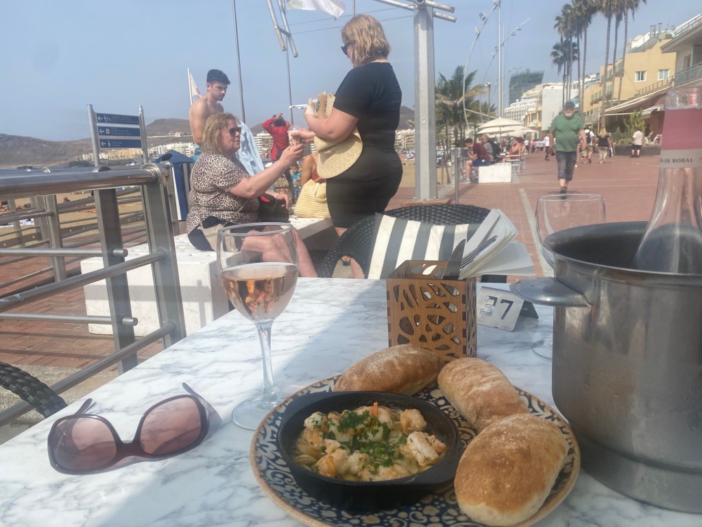 Lunch intas längs Las Canteras, detta utan omfattande diskussion om var och varför och varför inte och utan hänsyn till de frekventa tipsen på nätet om vart ”alla” går.