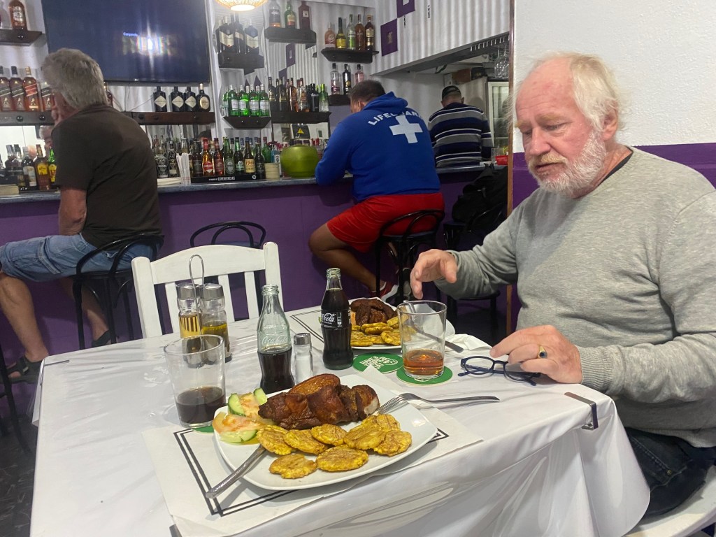 Några drinkar inåt de gamla delarna av stan som landar i enkel måltid. Ugglan hittade tillbaka till ett mysigt dominikansk hål i väggen.