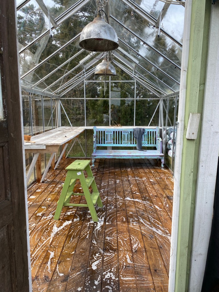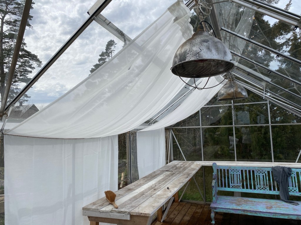Hon: såååå fint väder hela helgen, sommarvärme! Alltså hög tid städa i växthus 2, och börja flytta ut de stackars chiliplantorna som står för tätt och i för små krukor inne. Är fullständigt slut, har inte hunnit äta, så bloggen blir en bildkavalkad av dagens arbetspass.